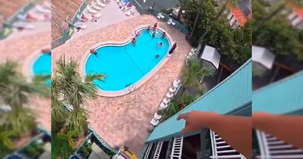 El terrible video de un turista británico saltando a una pileta desde el quinto piso: “A lo Charly García”