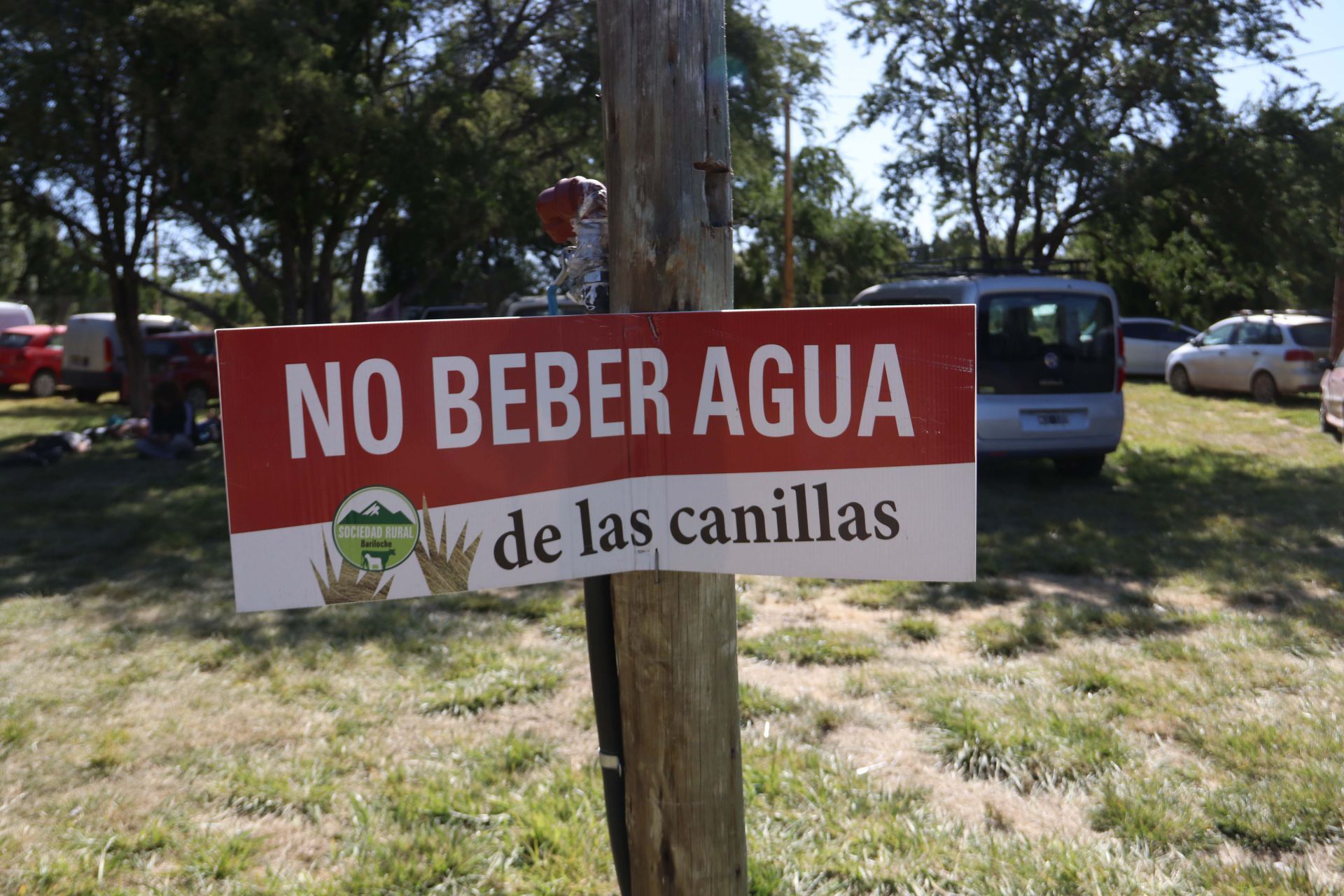 Este cartel, que no fue colocado por los organizadores del evento cervecero, se encuentra ubicado en un sector del predio de la Rural. Sin embargo, es una clara indicación que luce, o más bien resalta, teniendo en cuenta el contexto. El cartel fue rápidamente advertido por el fotoperiodista de El Cordillerano.