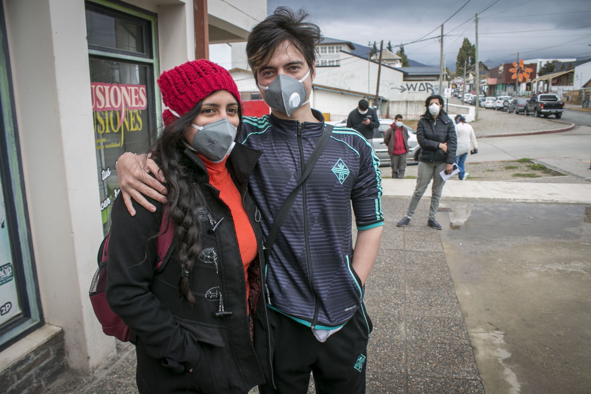 Llegaron las lluvias otoñales y las temperaturas bajo cero. Este año los abrigos habituales de la zona se acompañan con tapabocas, muy variados y para todos los gustos.