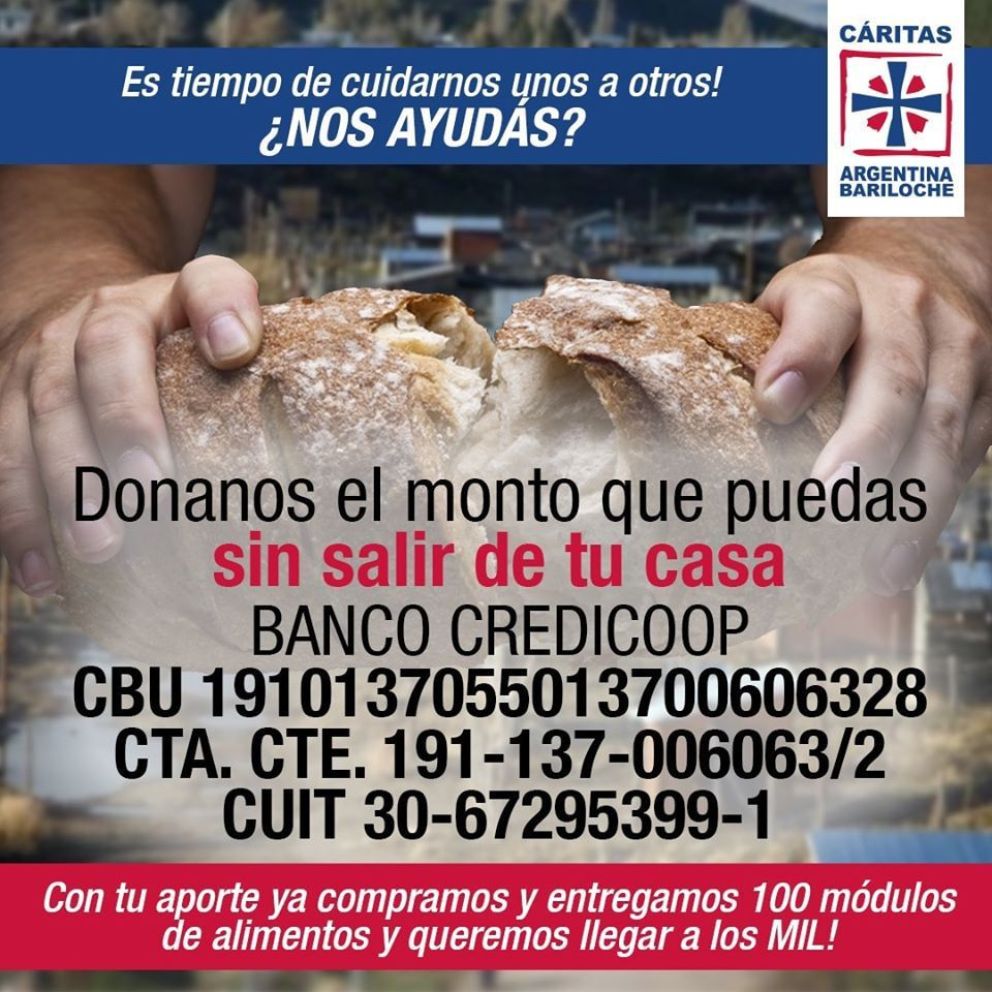Tal como reflejáramos en nuestras páginas hace algunos días, continúan desde Cáritas Bariloche con la campaña de alimentos para entregar a quienes más lo necesitan.