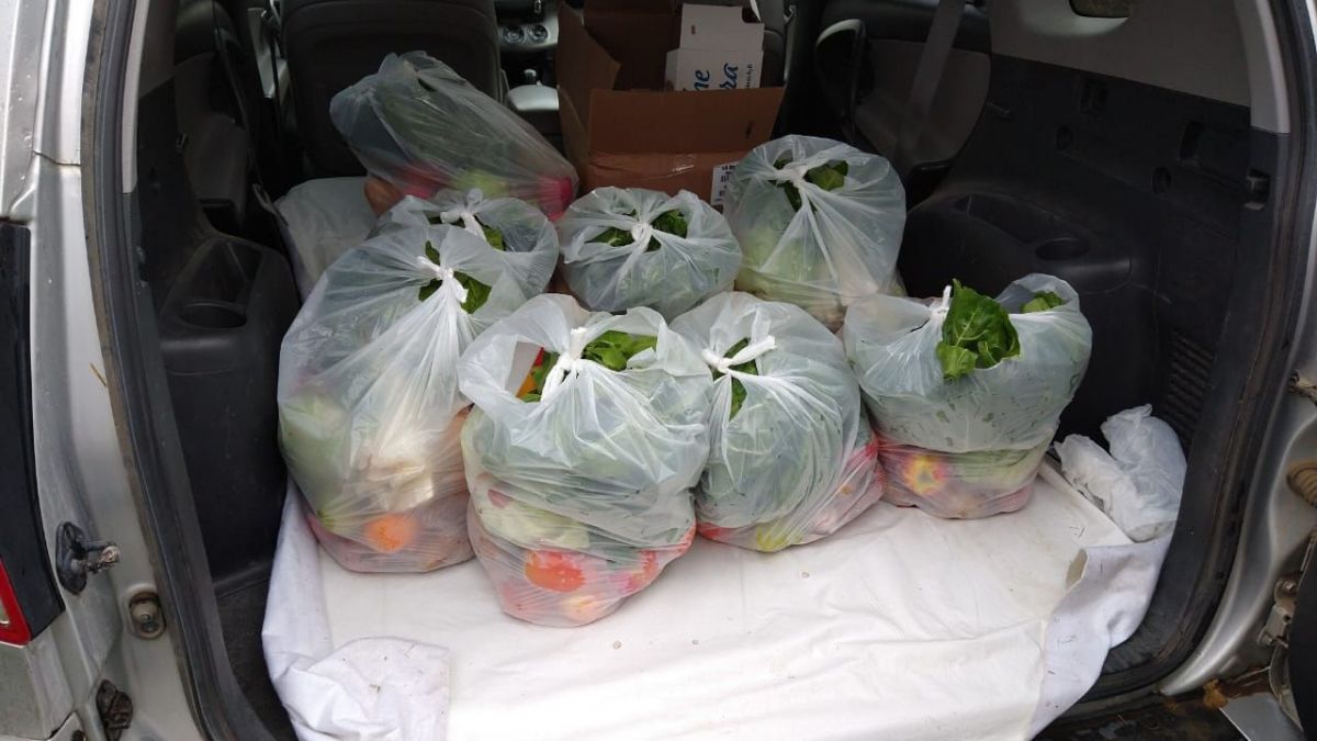 “Confeccionamos un listado según las familias y salimos los domingos en dos camionetas a recoger aportes y luego a repartirlos”. Arman módulo de alimentos muy completos que incluye además artículos de limpieza y verduras, la carne la suman solo cuando pueden.