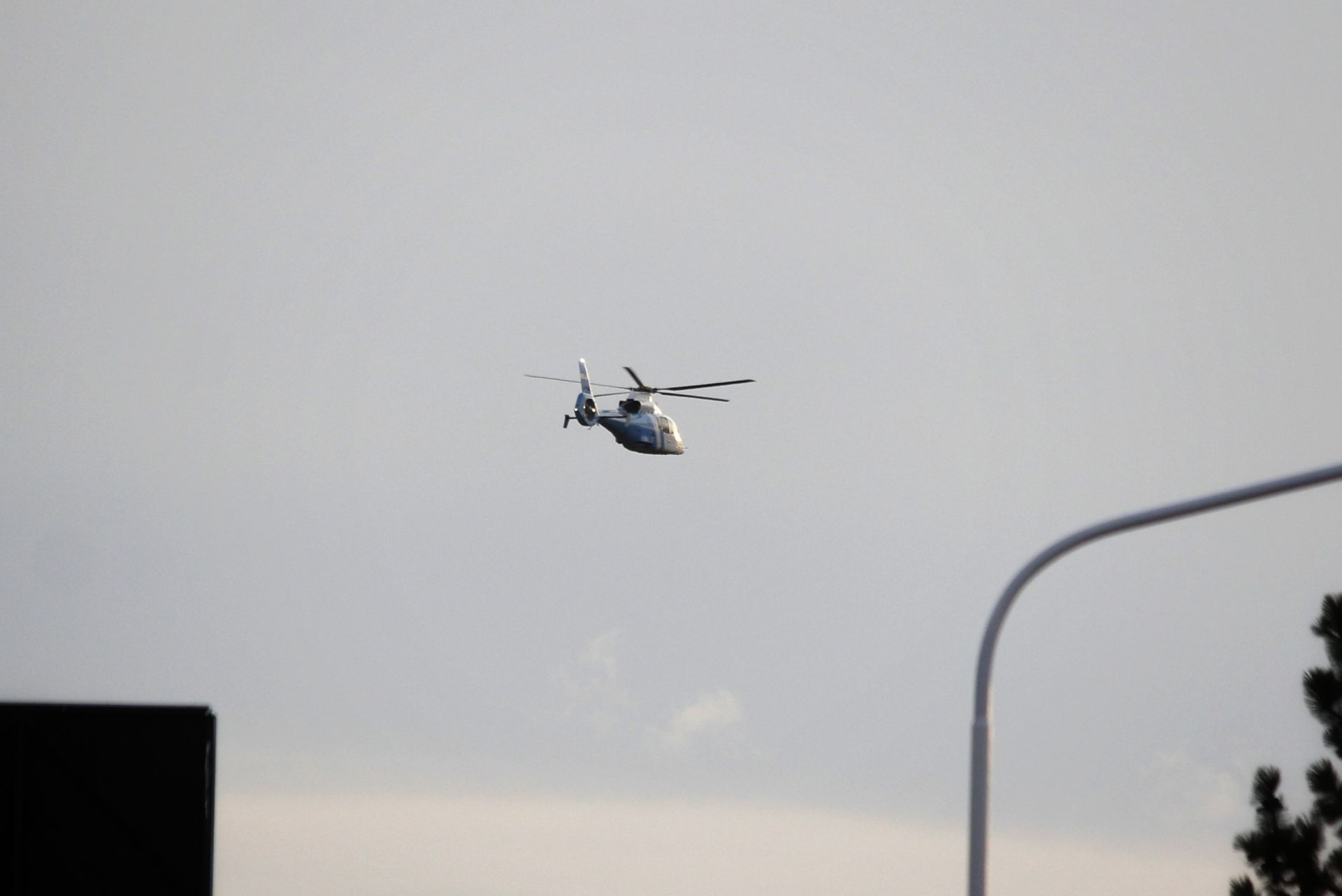 El helicoptero con el mandatario presidencial rumbo a Villa La Angostura.