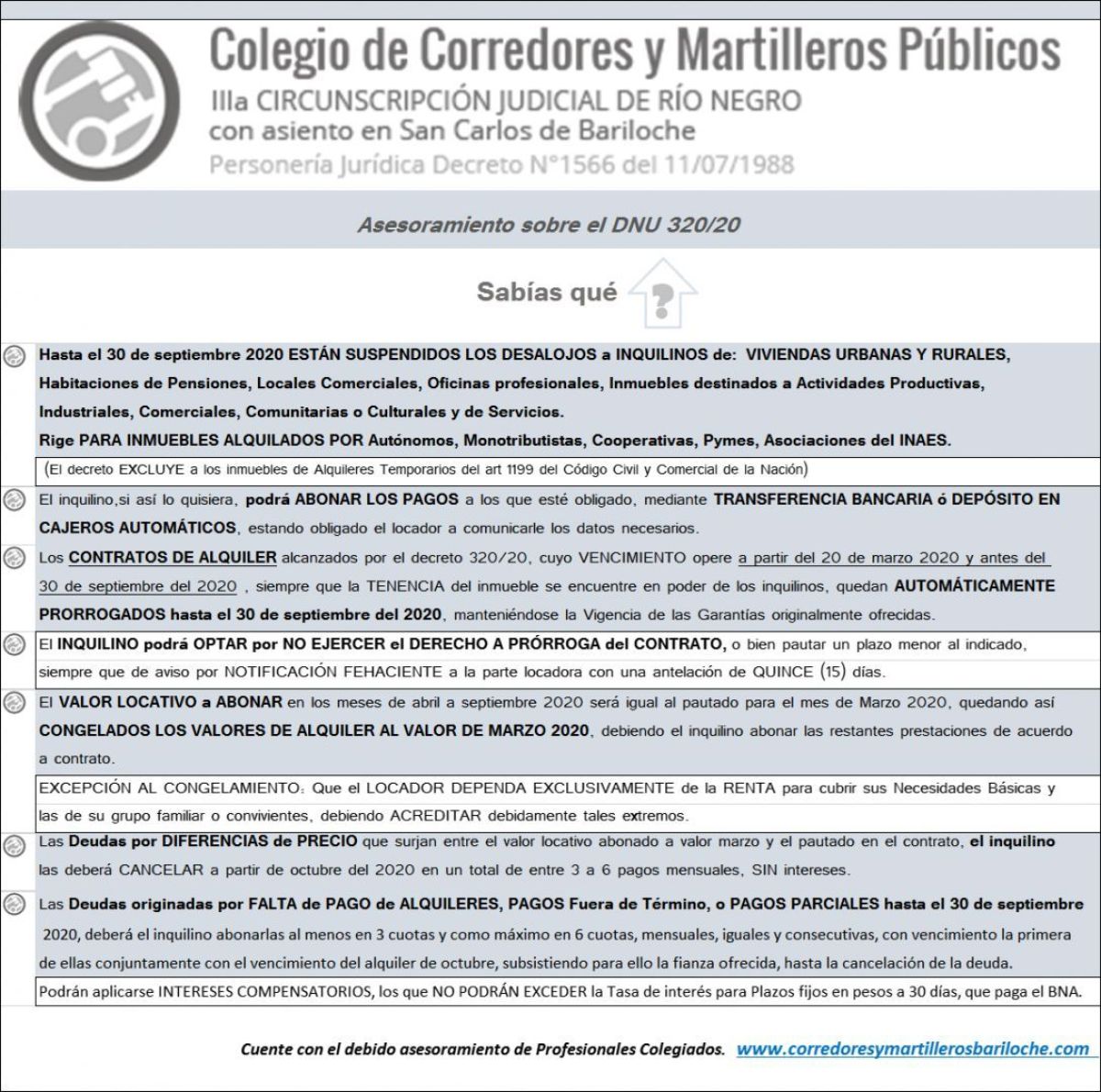 Desde el Colegio de Corredores y Martilleros públicos recordaron la serie de disposiciones del Decreto de Necesidad y Urgencia con respecto a la situación de inquilinos y propietarios que establece un contrato de alquiler.