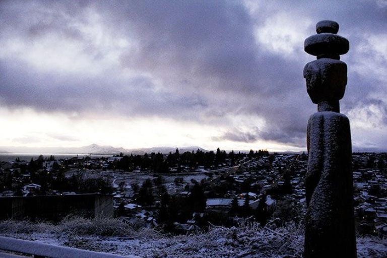Esta mañana, luego de varias horas de intensas lluvias y vientos, la mayor parte de la ciudad amaneció cubierta con una capa de nieve.