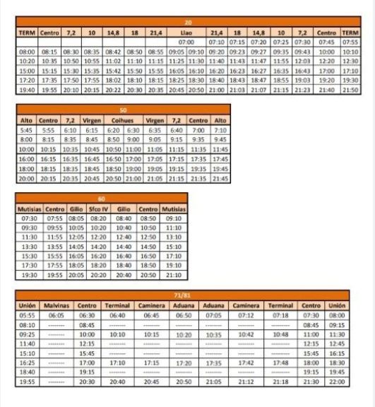 La empresa Mi Bus, concesionaria del Transporte Urbano de Pasajeros, informa los horarios y frecuencias de las líneas 20, 50, 60, 71 y 81 para mañana sábado 20 de junio -feriado nacional por el Día de la Bandera- y este domingo 21 de junio.