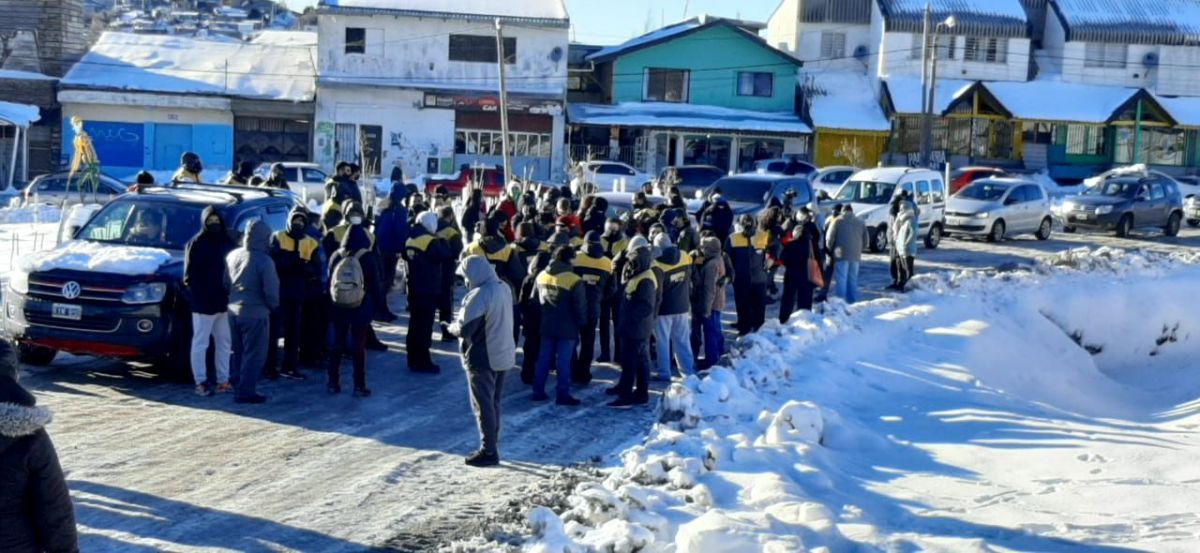 Mientras algunos trabajadores conducían los vehículos que conforman el servicio en tiempos de pandemia (dieciocho unidades que transitan la ciudad), la gran mayoría de los empleados protestaban a viva voz.
