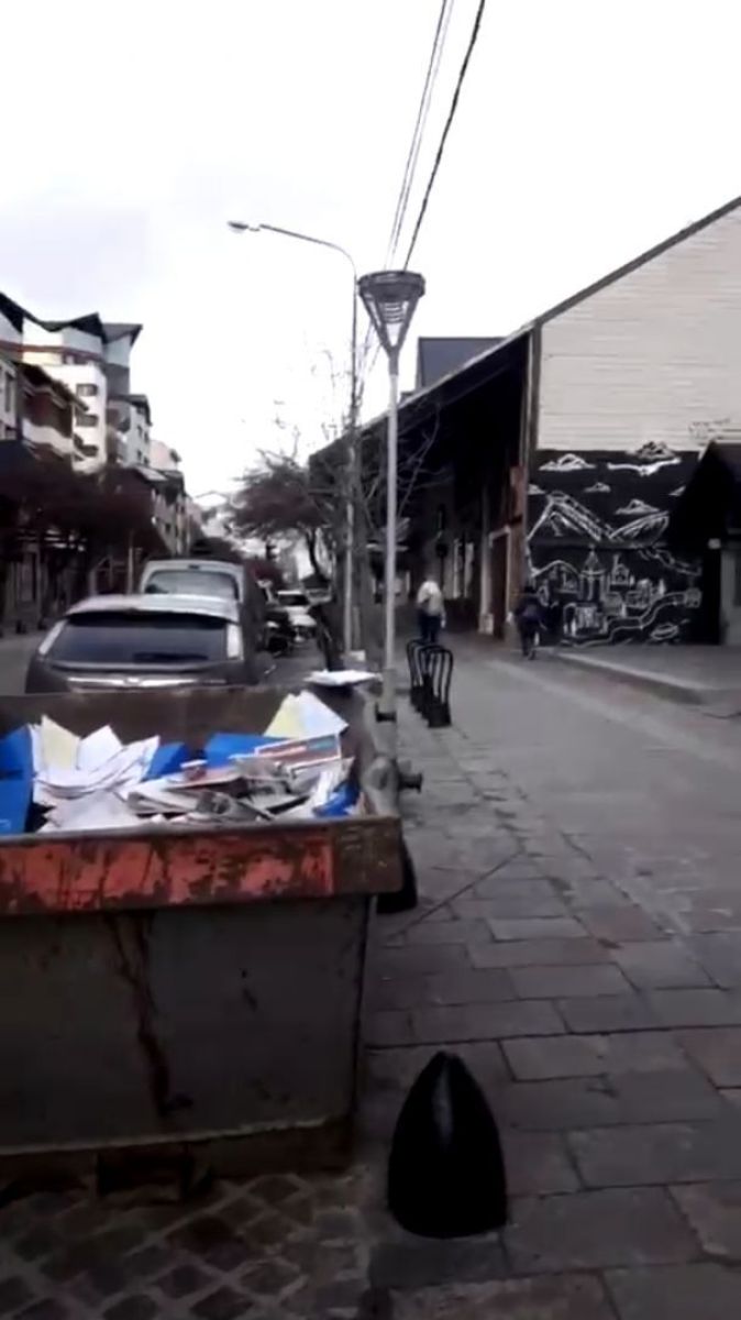 Los expedientes en el contenedor ubicado en plena calle Mitre.