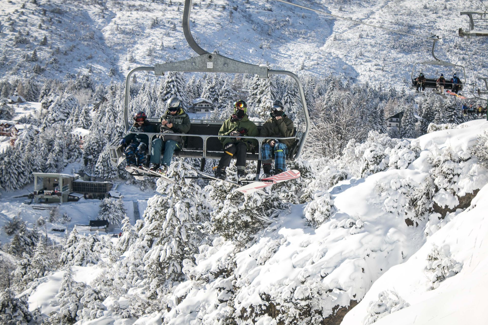 Al llegar a los medios de elevación, se apreciaba el que, quizá, sea el punto a tener más en cuenta en lo referido al cuidado contra el COVID-19, ya que las personas se sentaban pegadas unas a otras. Así, por ejemplo, en la silla séxtuple, seis esquiadores compartían el trayecto.