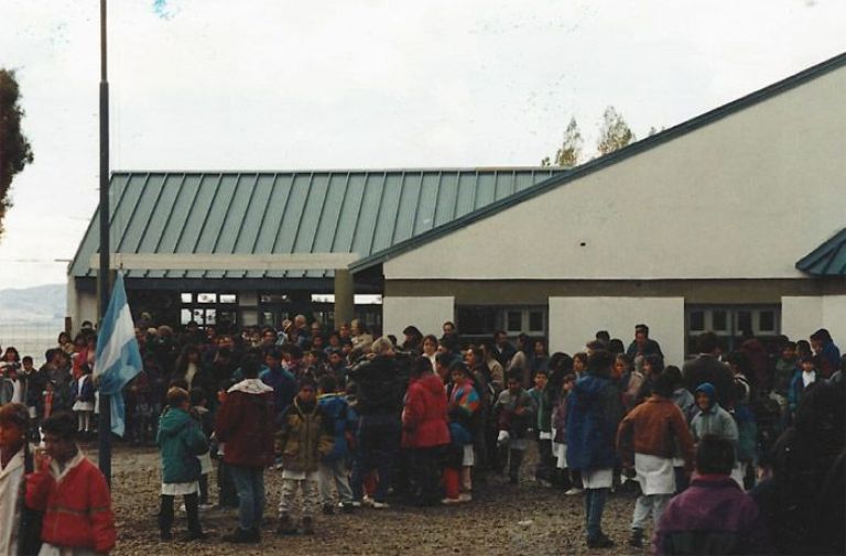 Contó la docente que “en ese año entre la comunidad y el Ejército compraron una casa de lo que era el desarme de Cerros Colorados y El Chocón, el Ejército la trajo y la compañía de Ingenieros armó el edificio y ahí empezó a funcionar la escuela en el mismo lugar donde está ahora”.