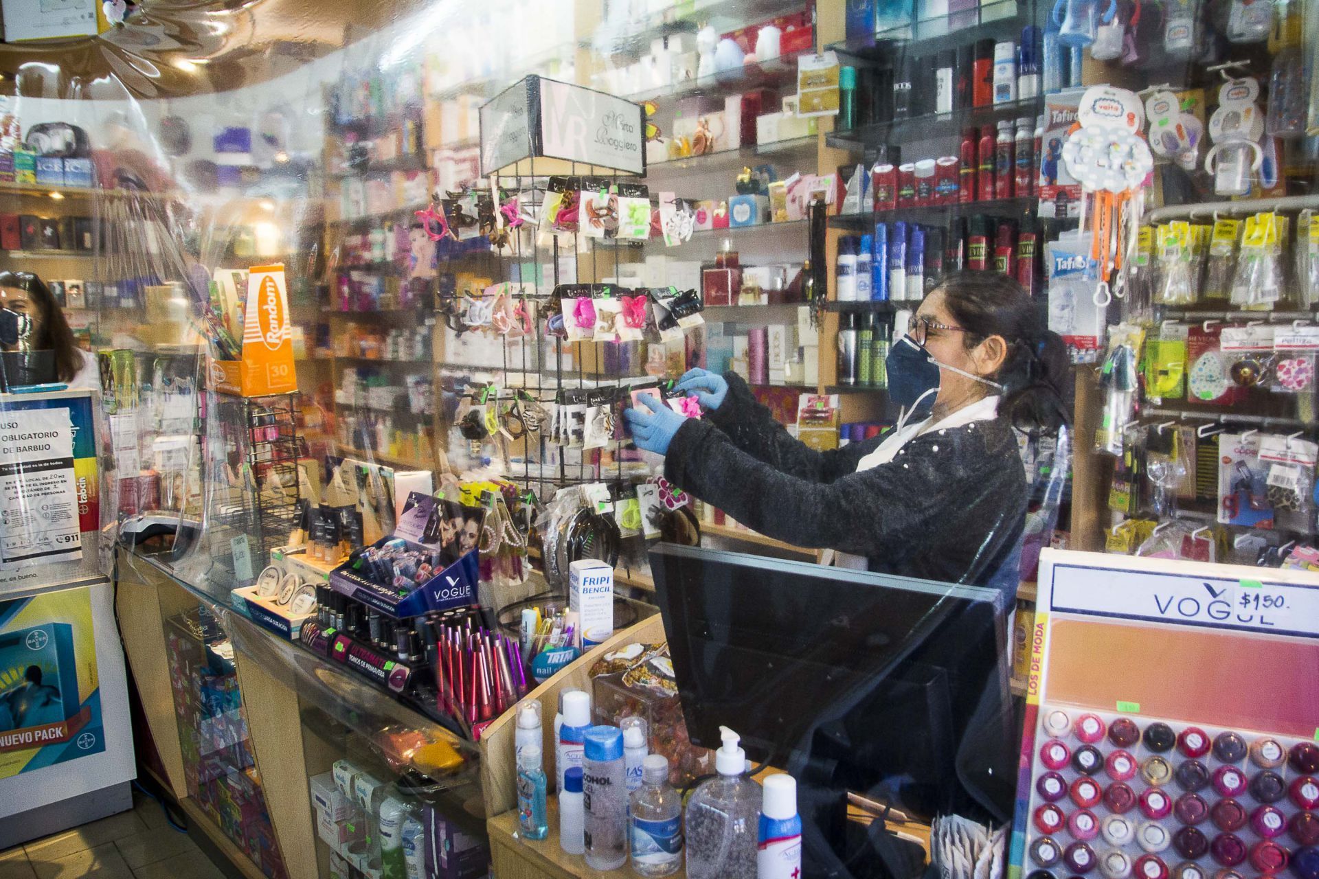 Por ejemplo, en Farmacenter II, por la avenida San Martín, Rubén Caputo mostró diferentes tipos de barbijo que tenía a la venta, y recordó cuando solían agotarse, al inicio de la cuarentena, al igual que el alcohol: “A ninguna droguería le quedaba… Nosotros teníamos una reserva, pero luego fue complicado de conseguir”.