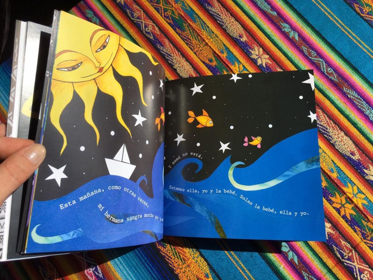 Por el lado de la artista plástica, “desde que Vir me acercó el texto -que como ella dijo es una especie de capítulo de otro cuento o historia que veníamos trabajando juntas- me encontré con el gran desafío de hacer algo bello, porque el texto de por sí es fuerte”, señaló. “Tiene mucha intensidad, entonces pensando en que lo iban a leer niños y niñas, vi cómo acolchonarlo un poco para que fuera más suave a través de la imagen.