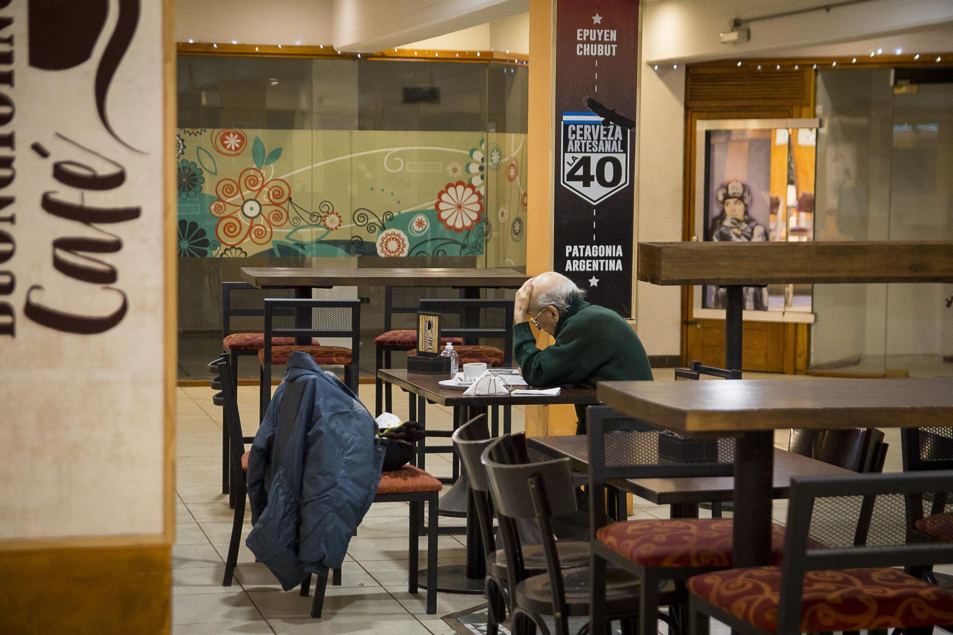 Las galerías son una clara muestra de los estragos que acarrea la pandemia. La otrora destacada Galería del Sol muestra una cara de pesadumbre, con locales cerrados, y una cafetería que suele trabajar con apenas cinco mesas ocupadas en todo el día. Así lo atestigua Brian Schulmeister, que está desde las 13 a las 19. El muchacho, al referirse a la poca gente que deambula, lo que también conlleva aburrimiento, afirma: “Lo más divertido que tengo para hacer es limpiar y desinfectar”.