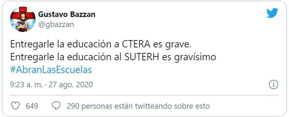 Con el #AbranLasEscuelas varias personalidades de la política, periodistas aprovecharon la red social del pajarito para hacer escuchar el reclamo por los chicos de bajos recursos que en este tiempo no pudieron acceder a la educación virtual.