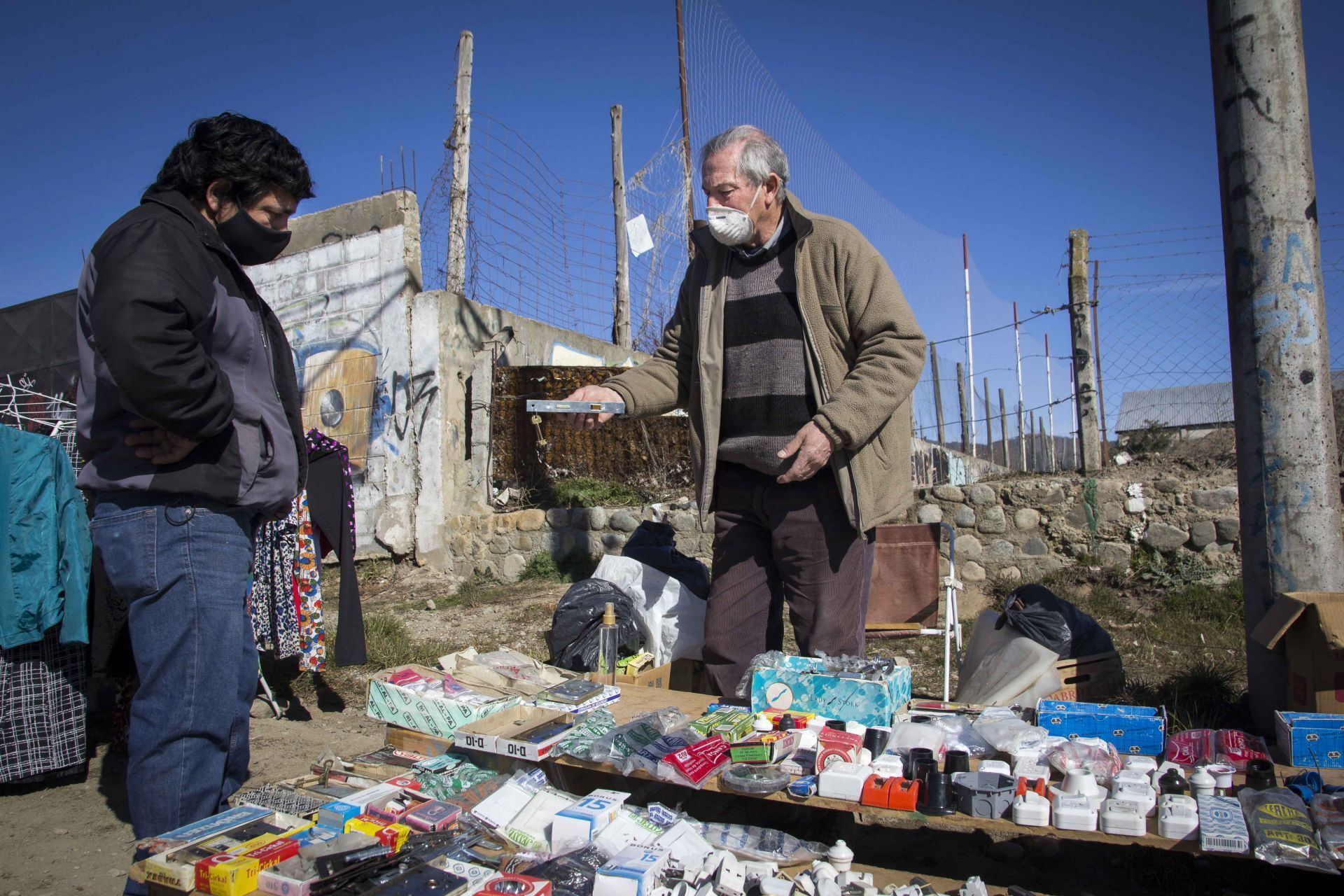 Según se pudo observar, mucha mercadería que antes estaba dispuesta sobre las mesas ahora está introducida en bolsas de nylon. Luego de que una persona se retira del puesto, desinfectan lo que se haya tocado.