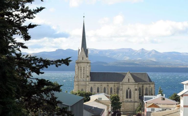 Sobre la Catedral, escribió Uhart: “está junto al lago, hecha en piedra. El lago aminora la severidad de la piedra. Ya adentro, veo un enorme mapa de las corrientes colonizadoras de la Virgen María, que en 1672 fue llevada al lugar, y se la llama Nuestra Señora del Nahuel Huapi. En el mapa están situadas la de Itatí, la de Luján. En el mapa se ve Bariloche tan cerca de Chile que me dan ganas de pasar al otro lado. Es un mapa con ubicación de vírgenes”.