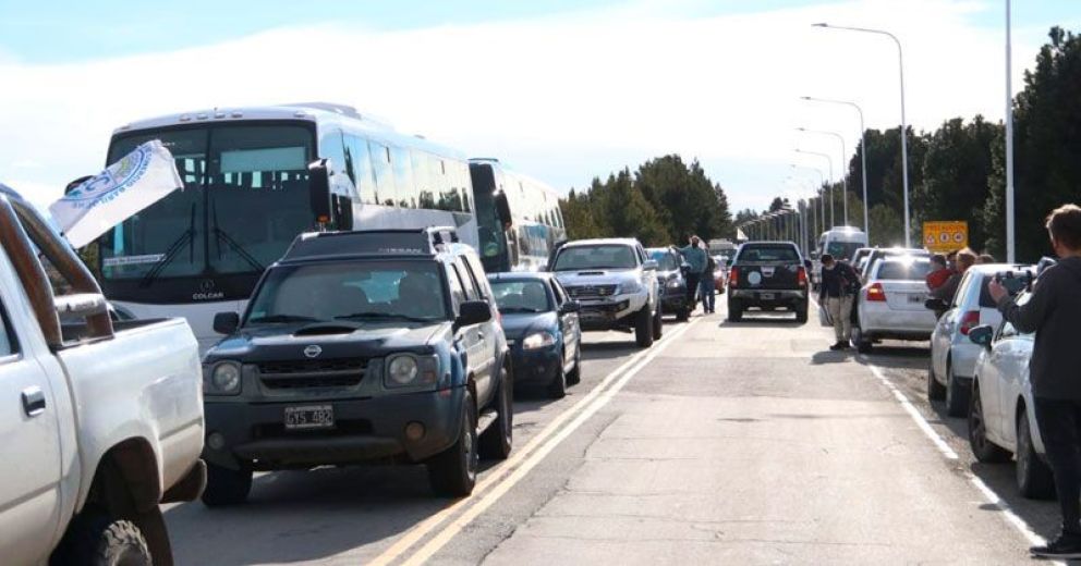 Pasadas las cuatro y media de la tarde comenzó la caravana de autos que partió desde la rotonda de Circunvalación hasta llegar al aeropuerto de la ciudad, reclamando por la “reactivación del trabajo en Bariloche”, señalaron en la convocatoria.