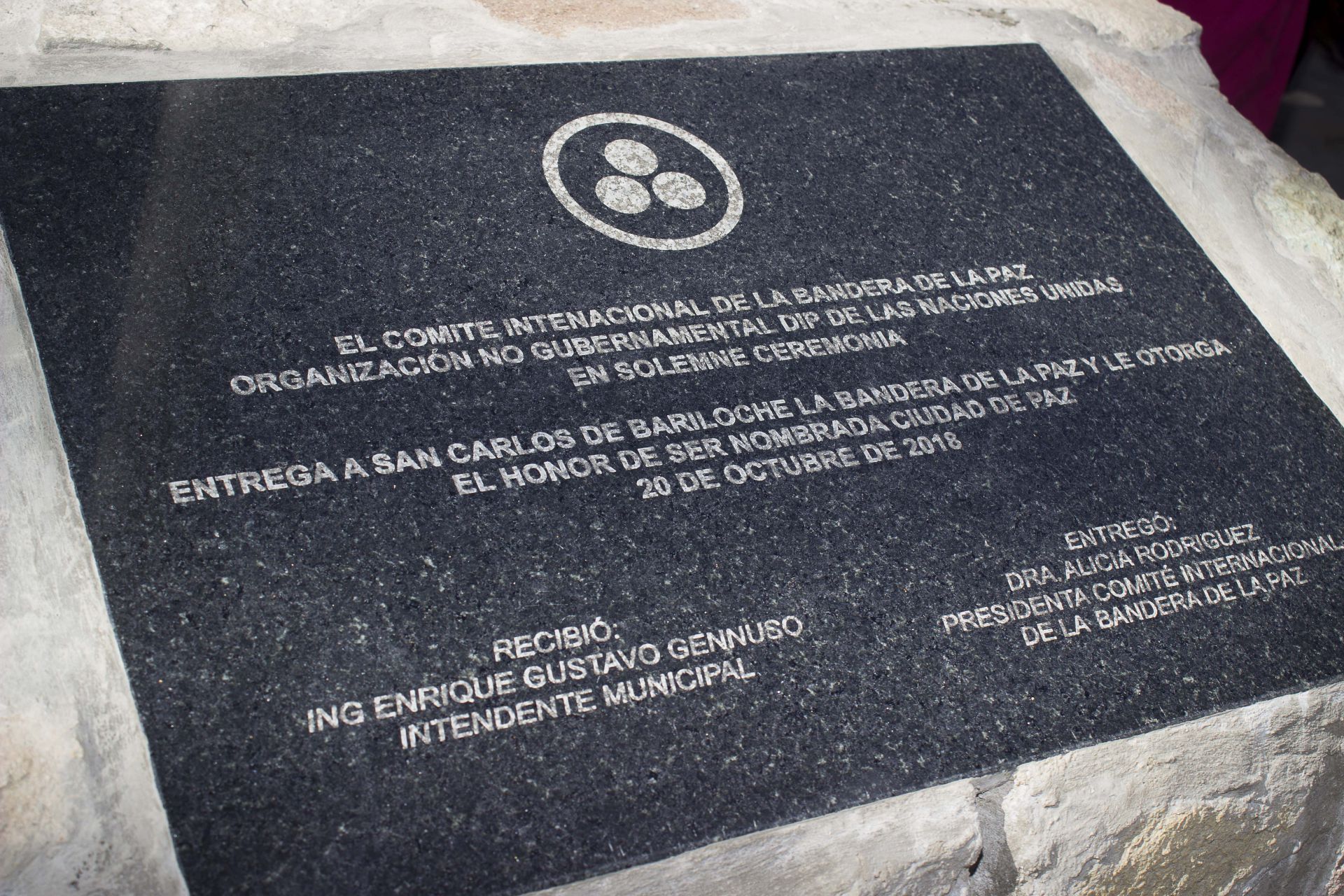 En 2018 se realizó un acto  en nuestra ciudad contando con presencia de la Dra. Alicia Rodríguez, presidente del Comité Internacional de la Bandera de la Paz, quien hizo entrega oficial del emblema al intendente Gustavo Gennuso declarando así a San Carlos de Bariloche como Ciudad de Paz. Una semilla que se dejó sembrada para que como comunidad, se trabaje para lograrla, se limen las diferencias y juntos, se camine hacia el progreso.