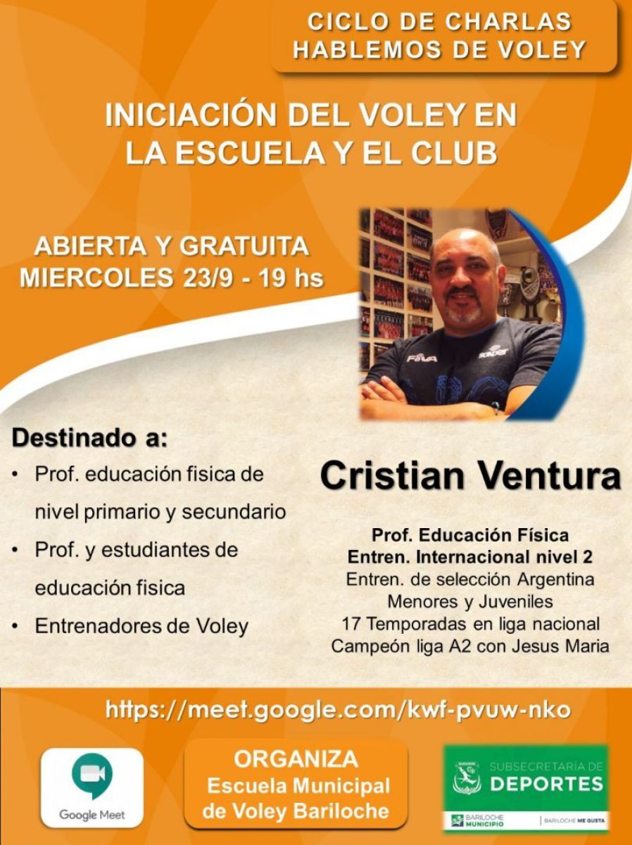 El ciclo continúa este miércoles con Cristian Ventura, un destacado entrenador y capacitador de la Federación de Vóleibol Argentino. “Nos parece muy importante esta charla porque va a abarcar todo lo que es iniciación en el vóley y está dirigida a todos los entrenadores, profesores y estudiantes de educación física que estén involucrados en escuelas”, señaló.