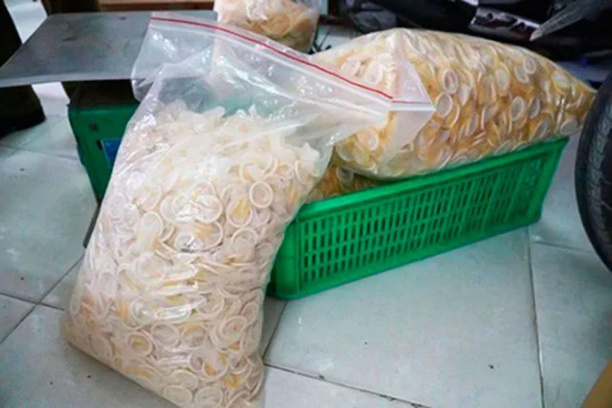 La policía del mercado de la provincia de Binh Duong, Vietnam, incautó 324 mil preservativos usados ​​que estaban a punto de limpiarse y revenderse.