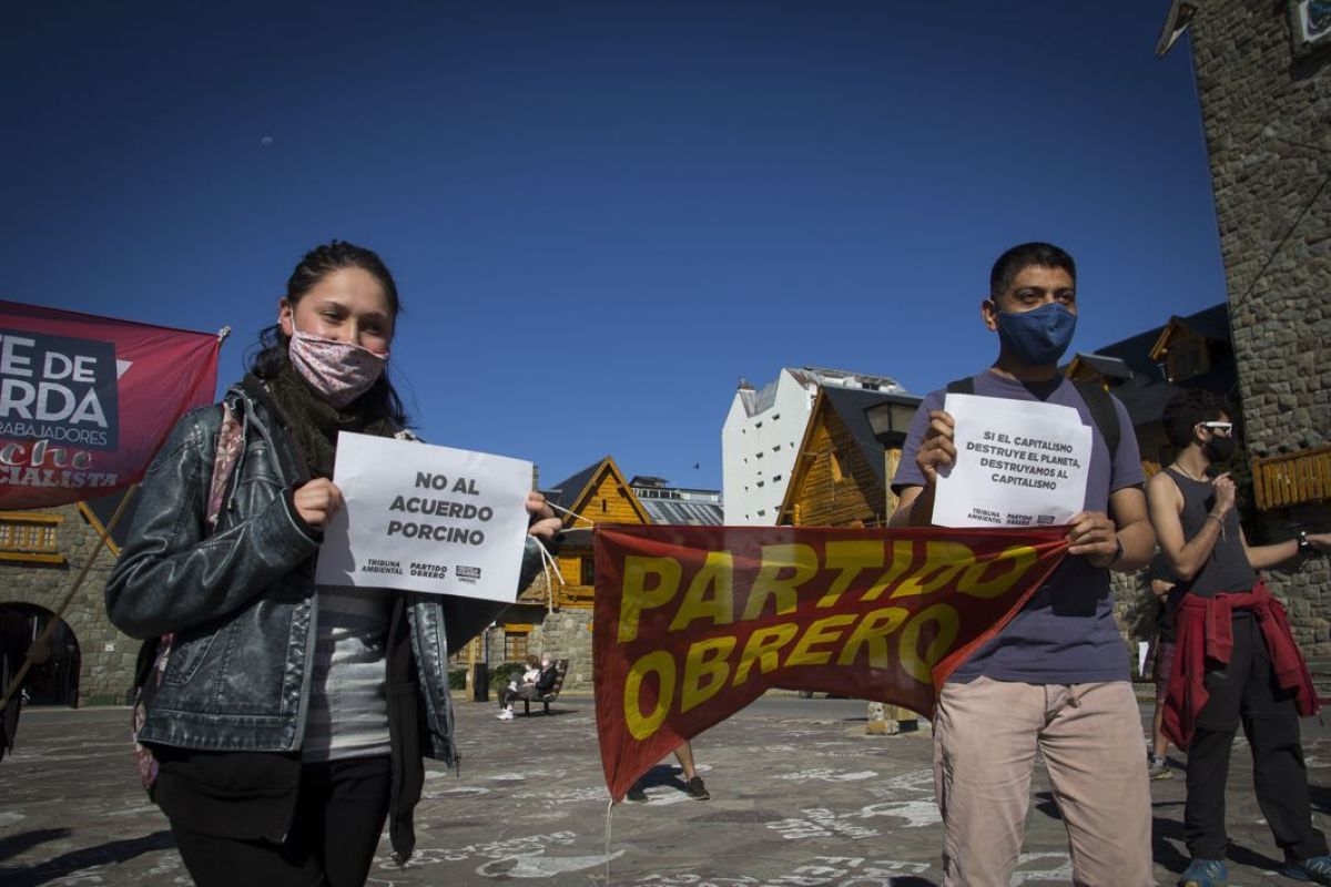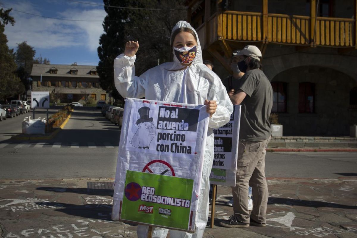 En Bariloche, el reclamo se centró en el rechazo al acuerdo porcino con China, por lo que hace exactamente un mes, el 25 de agosto, se realizó una manifestación a nivel nacional. Según indican quienes militan en contra de este acuerdo, las granjas industriales "son potenciales generadoras de pandemias que se producen por las condiciones de hacinamiento en las que viven los animales".