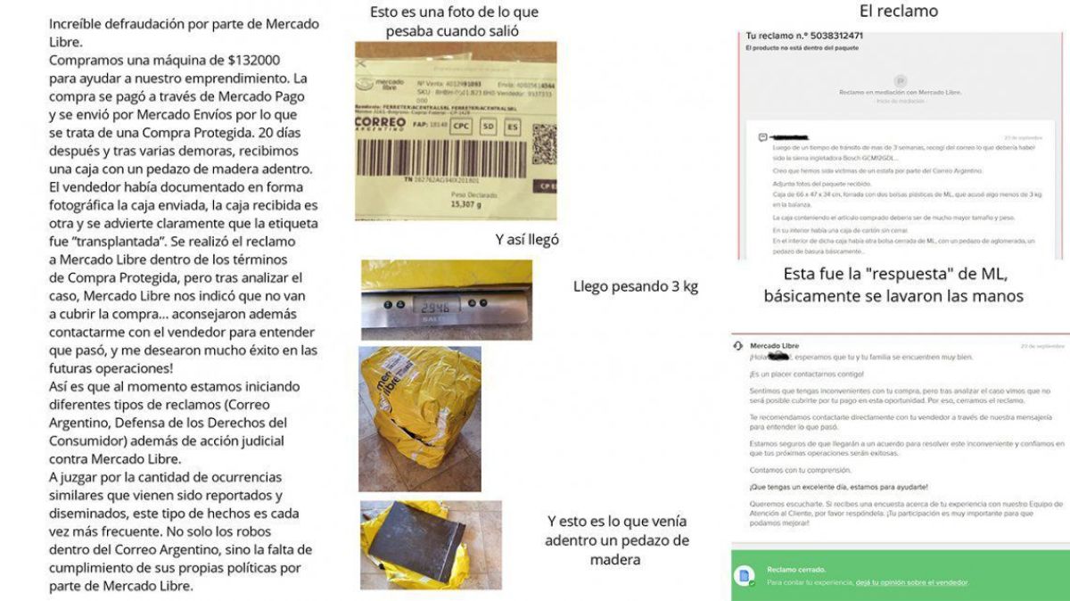 Retrasos en las entregas, transacciones inconclusas, productos que no cumplen con las características de los pedidos o los que es peor, estafas con objetos que nada tienen que ver con los comprados -ladrillos o botellas en lugar de una laptop por caso-.
