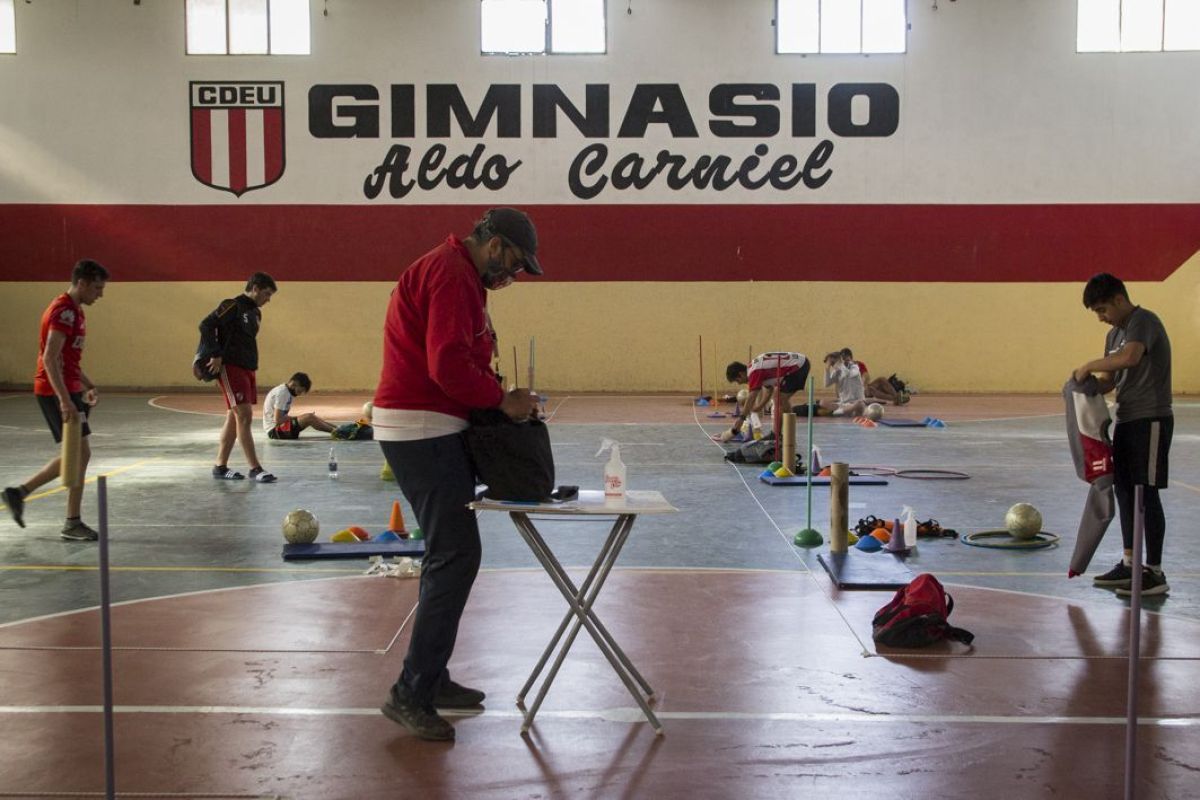 En ese sentido hay un espacio entre entrenamiento y entrenamiento para desinfectar el espacio utilizado. Desde el club del Barrio Santo Cristo esperan poder ir avanzando y habilitando otros entrenamientos de manera progresiva y en dos semanas poder estar entrenando en la cancha de césped sintético y luego en el Bruno Tarrini.