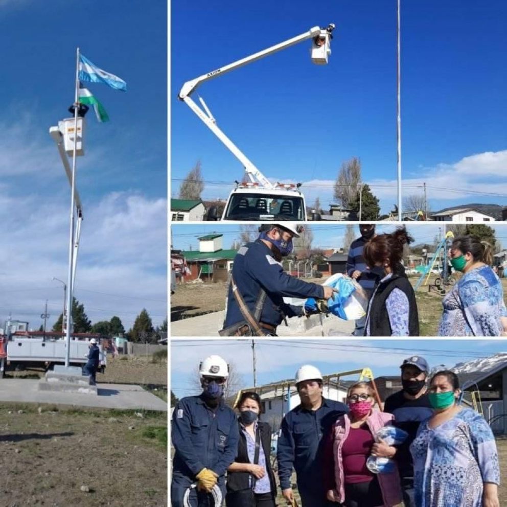 La última bandera fue robada dejando solo una de las cuerdas y desde entonces, nada habían logrado para restituirla. “Gracias a la gestión de la legisladora Claudia Contreras se acercó un móvil con personal de la Cooperativa de Electricidad Bariloche y finalmente podemos volver a tenerla en el mástil”, dijo muy feliz. Ahora además izaron la de la provincia de Río Negro.