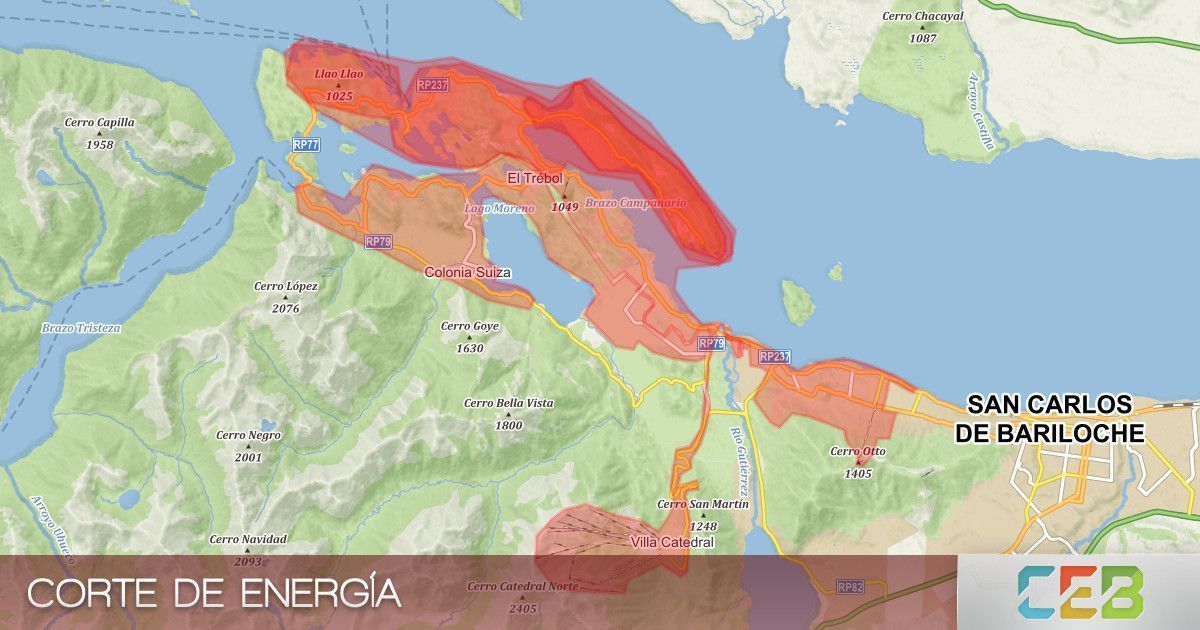La CEB informó que se registra un corte de energía eléctrica en los barrios Parque El Faldeo, Ladera Norte, Parque Cerro Otto, Parque Rancho Grande, Los Retamos, Pinar del Lago, El Mirador, Virgen Misionera, San Ignacio del Cerro, Peumayen, Pinar de Festa, Playa Bonita, Militar, La Cascada, Quinta 51, Villa Cerro Catedral, Monoblock Centro Atómico, Las Cartas, Colonia Suiza, Pájaro Azul , Lago Moreno, 2 de Agosto, Jockey Club, Casa de Piedra, Jamaica, Covivar, Hipódromo, Bahía López, El Trébol, Nahuel Malal, Playa Serena, Casa de Piedra, Don Orione, Península San Pedro, Don Bosco, Villa Llanquihue, Llao Llao, Pájaro Azul y Península San Pedro, El personal de energía se encuentra realizando las tareas de restitución.