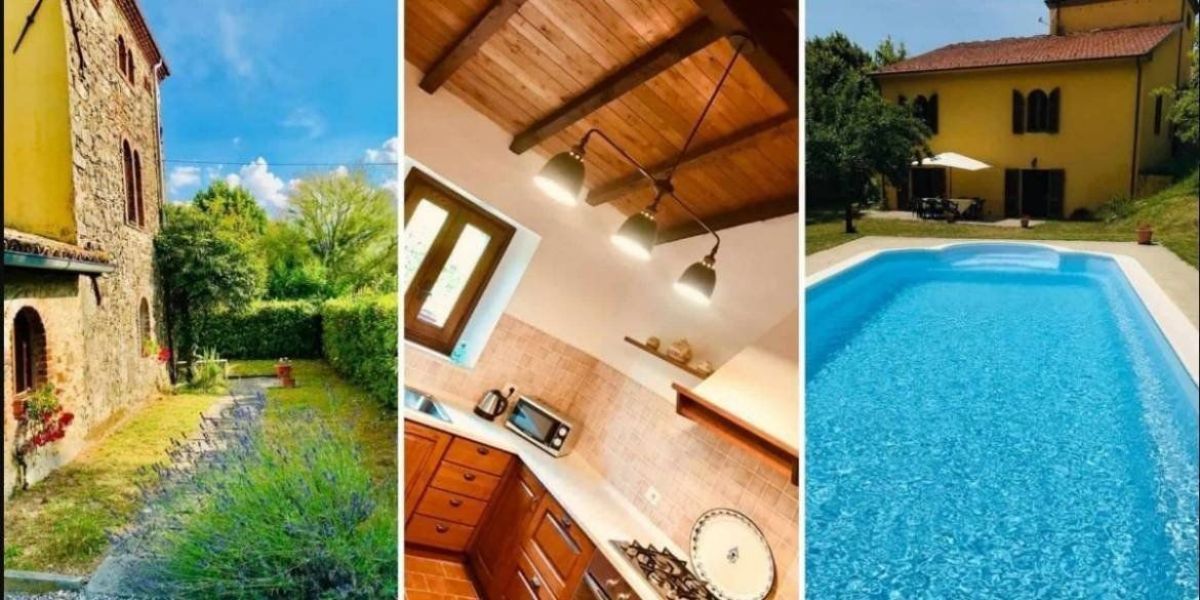 La mansión se ubica en medio de un paisaje de ensueño, con montañas, campos y naturaleza en Garfagnana, provincia de Lucca. Tiene cuatro dormitorios, tres baños, con grandes espacios, que incluyen un comedor y una gran cocina, con electrodomésticos y lavavajillas. Además, la villa tiene una piscina y un jardín con árboles frutales.