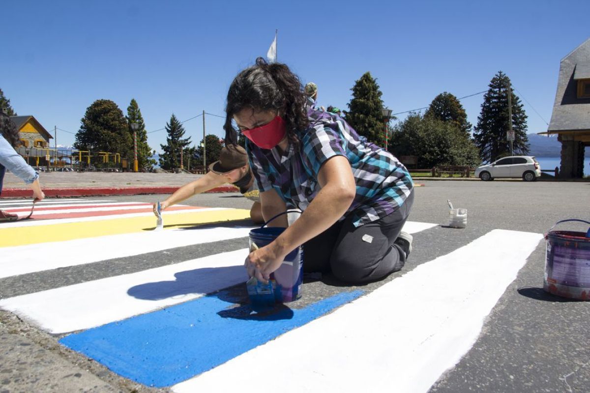 Este viernes al mediodía pintaron la senda peatonal frente a la entrada del palacio comunal con los colores que identifica el movimiento del orgullo LGBTIQ+, lugar que eligieron muchos para tomarse fotografías.