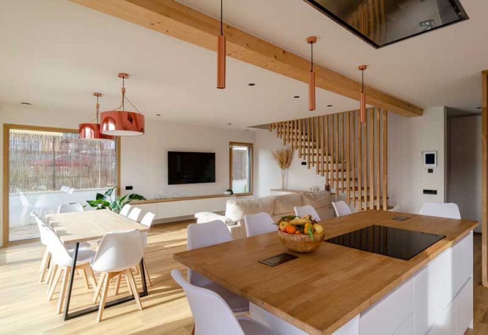 La pareja que forman la madera y el color blanco, inspirada en el estilo escandinavo, proporciona a los ambientes un aire natural y relajante, donde dejar pasar las horas y recuperar cierta tranquilidad en el día a día.