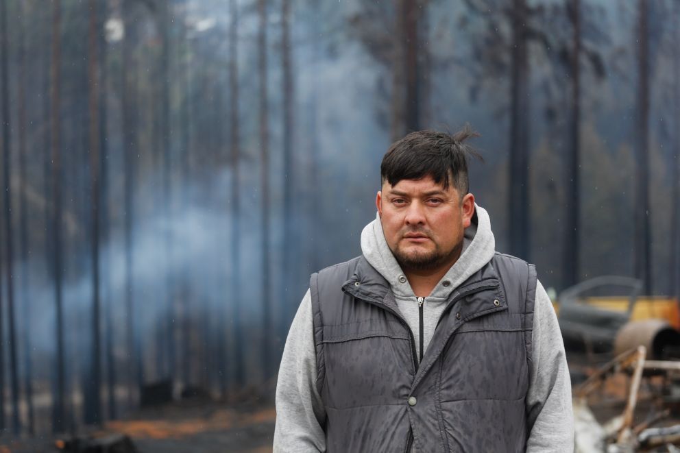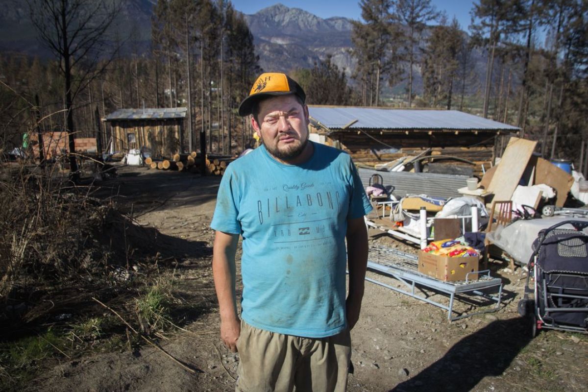 “Hasta ahora solo pusieron dos módulos habitacionales, y uno de ellos se cayó”, señala Julio Castañeda, a quien el fuego que arrasó con una parte importante de la Comarca Andina, hace poco más de tres meses, le incineró la casa.