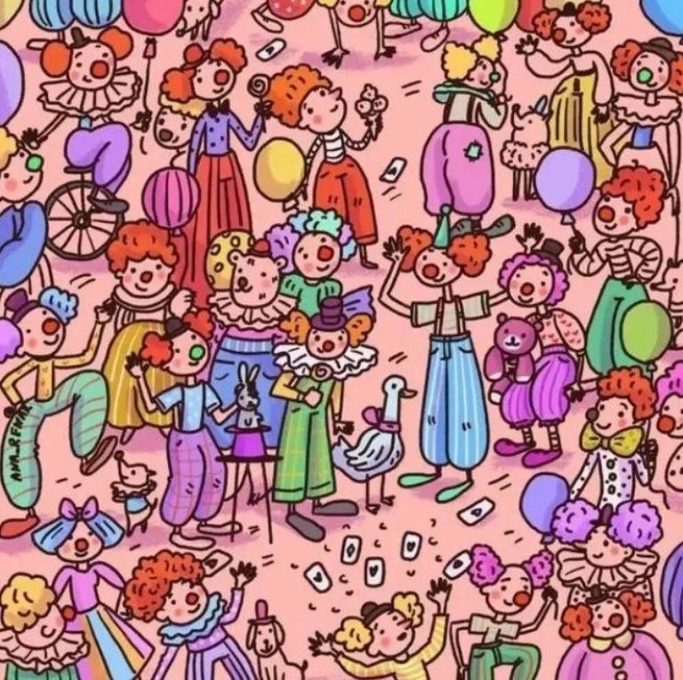 Reto viral: encontrá el oso entre todos estos payasos