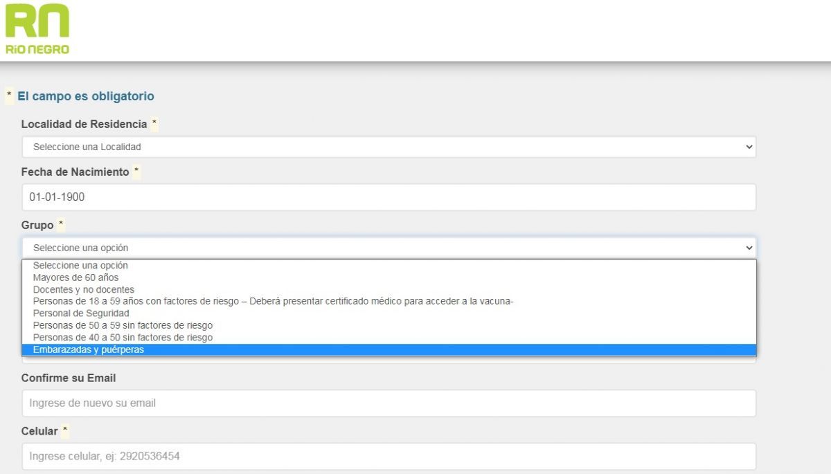 En el sitio web oficial de la provincia (https://vacunate.rionegro.gov.ar) ya se encuentra habilitada la opción para que embarazadas y puérperas se puedan anotar para recibir la vacuna contra el coronavirus.