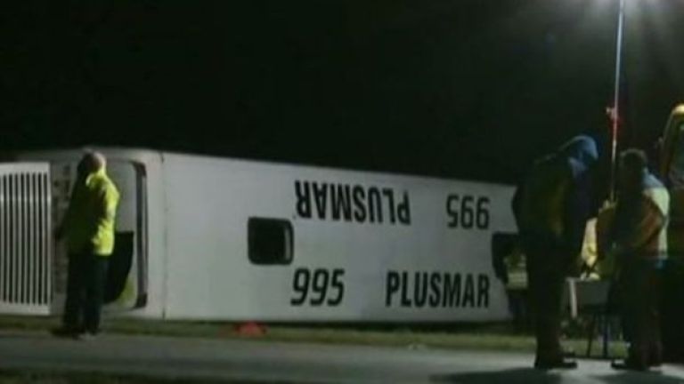 De acuerdo a los informantes, el micro cruzó el cantero central y volcó, por lo que quedó tendido en la banquina mano a Mar del Plata.