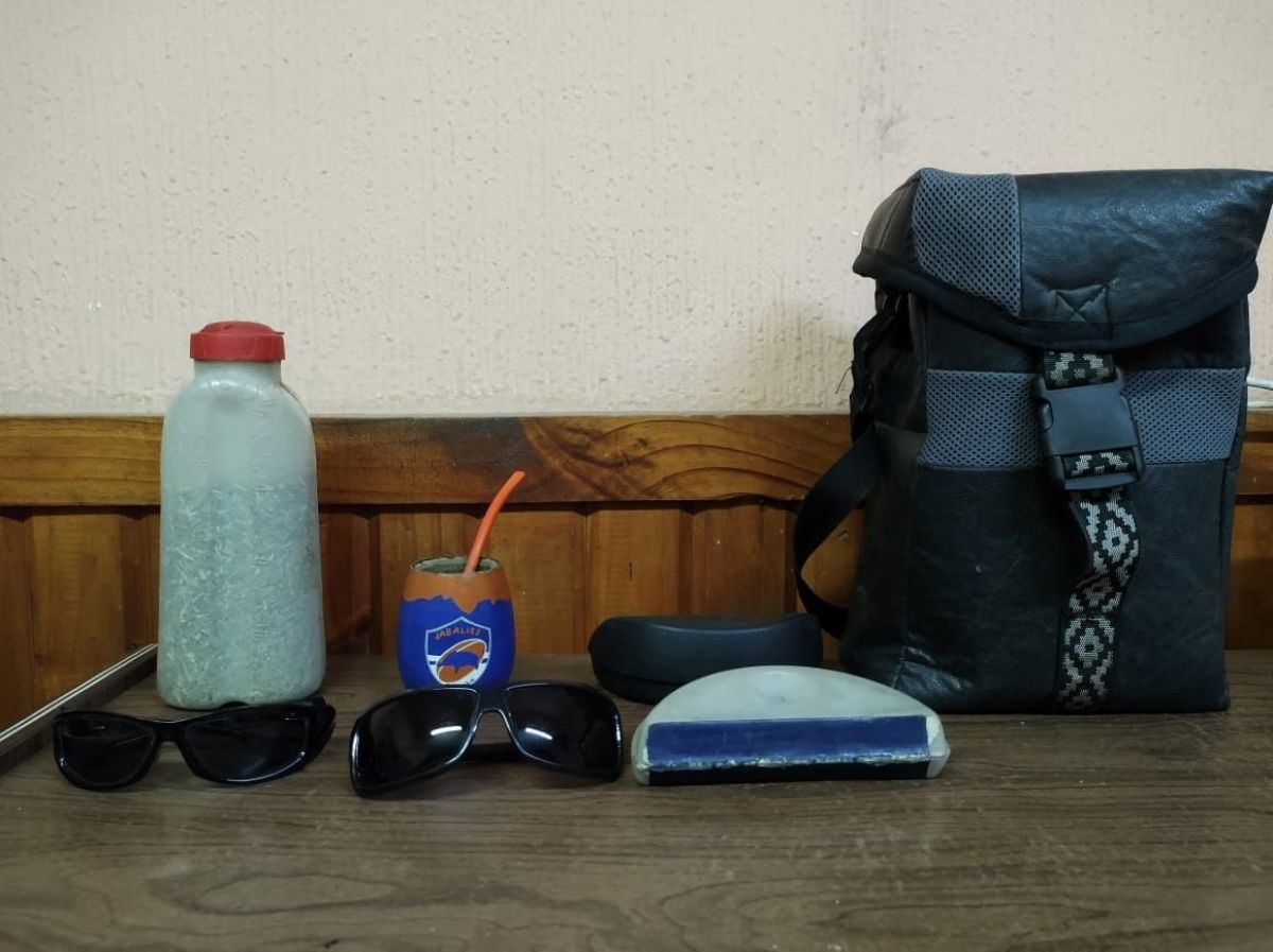En el lugar fue identificado un individuo de 25 años, quien en su poder tenía un bolso de viaje con prendas de vestir, una caja de herramientas y un bolso matero con la inscripción Jabalíes Rugby Club.