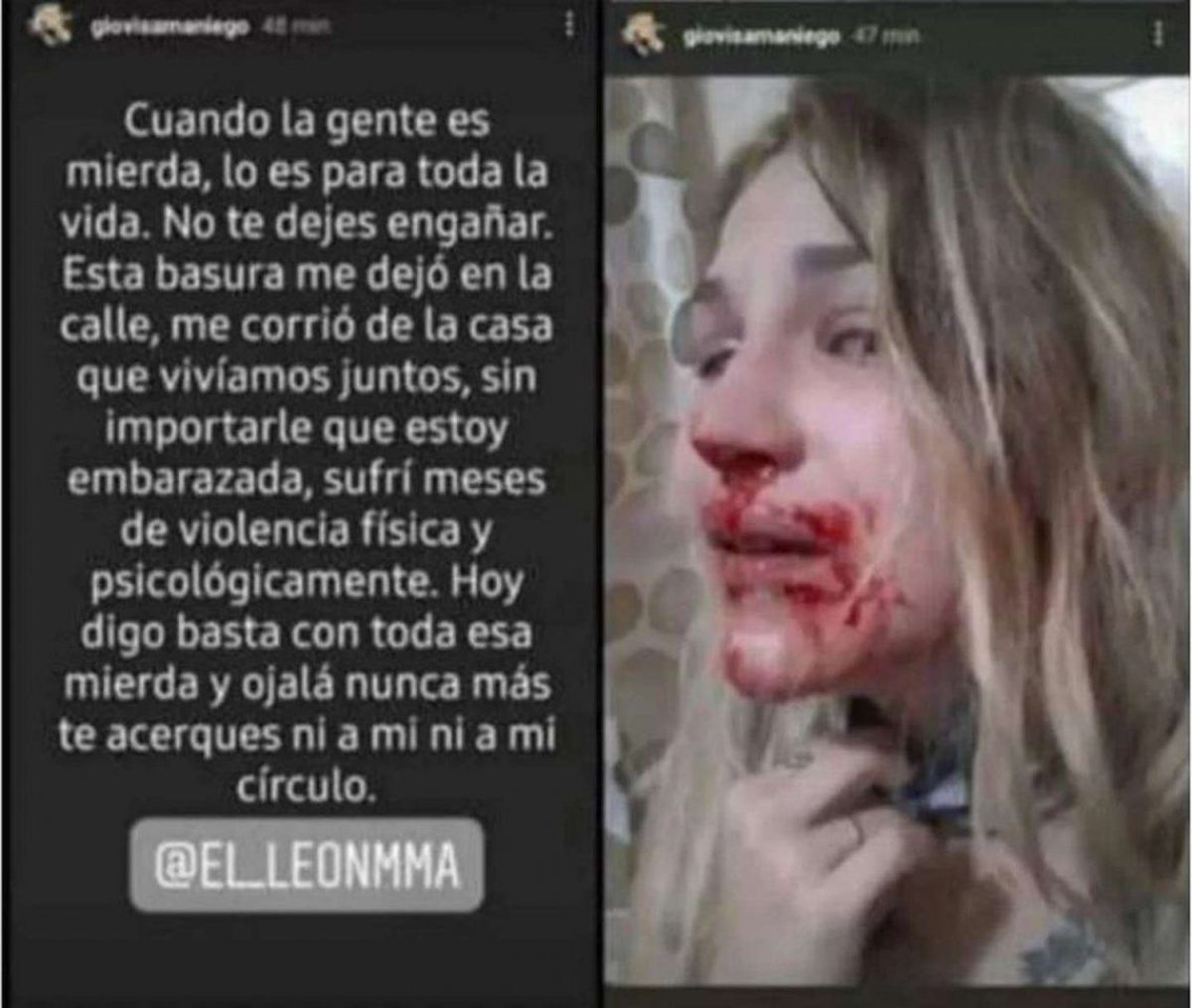 “Esta basura me dejó en la calle, me corrió de la casa que vivíamos juntos, sin importarle que estoy embarazada, sufrí meses de violencia física y psicológicamente”, publicó la joven, junto a una serie de fotos que la muestran con el rostro ensangrentado.