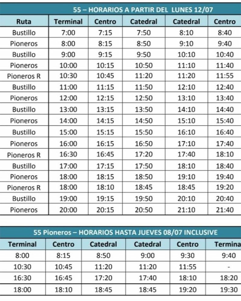 La empresa Mi bus informó los nuevos horarios de los colectivos que hacen el recorrido desde la terminal de ómnibus hasta la base del centro de esquí.