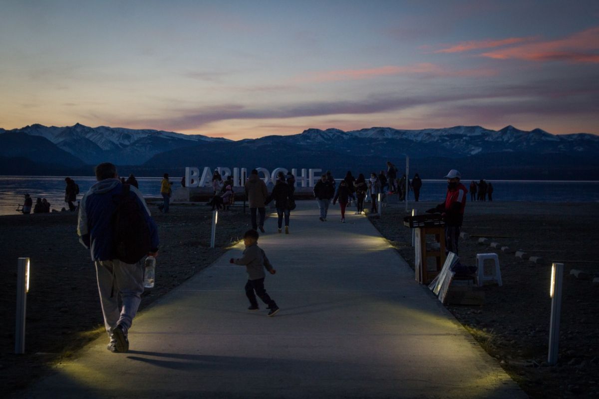 Uno de los lugares imperdibles para llevarse un lindo recuerdo de Bariloche sin duda es la Playa Centro, donde están ubicadas las letras de la ciudad. Este domingo, además la jornada se vio acompañada por un bello atardecer.