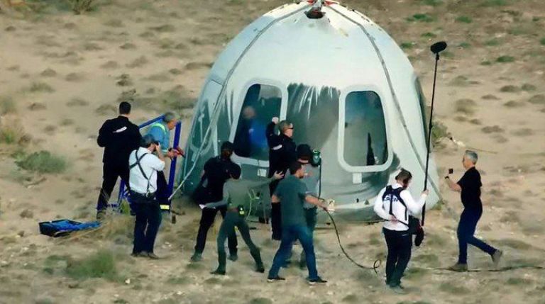 Blue Origin planeó su primera misión tripulada, un salto de menos de 11 minutos desde el oeste de Texas hasta más allá de la línea Karman y viceversa, para coincidir con el 52 aniversario de la llegada a la Luna. Junto a Bezos estuvieron su hermano Mark -quien dirige la fundación-, la aviadora Wally Funk, quien a sus 82 años será la astronauta más vieja de la historia, y el holandés Oliver Daemen, de 18 años, quien se convirtió en el más joven en realizar una travesía semejante.