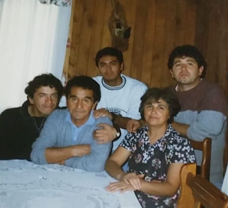 Los tres hermanos, con sus padres.