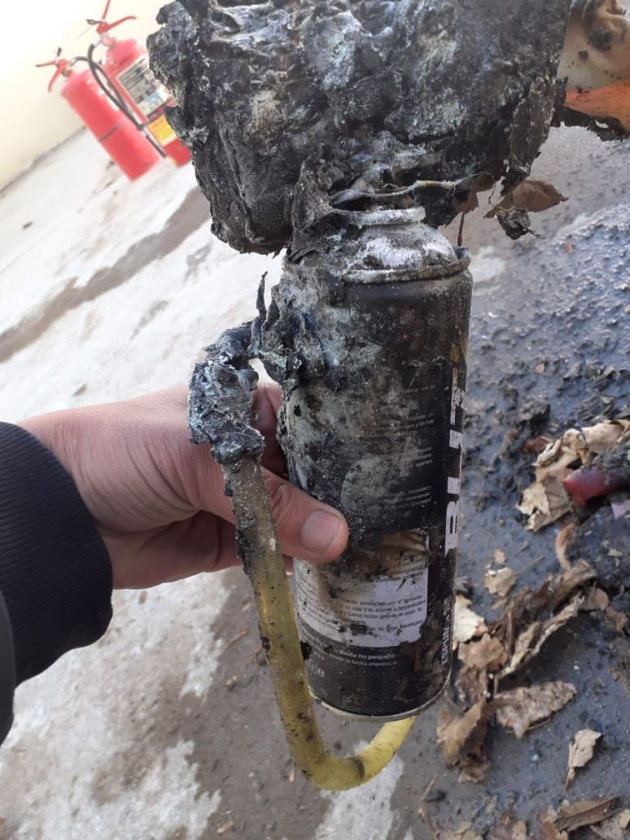 “El termotanque no ha sufrido ningún tipo de explosión o similar”, dice el acta de constatación labrada luego de la inspección. Agrega que “observando los materiales que se encontraban debajo del artefacto (colchonetas, dispenser eléctrico de agua, aerosoles de Pliuritano expandido y siliconas para uso de vehículos; bidones y combustibles varios) se llega a la conclusión que la explosión que los docentes que habitan la vivienda pudieron escuchar fue producto de la detonación de los aerosoles”.