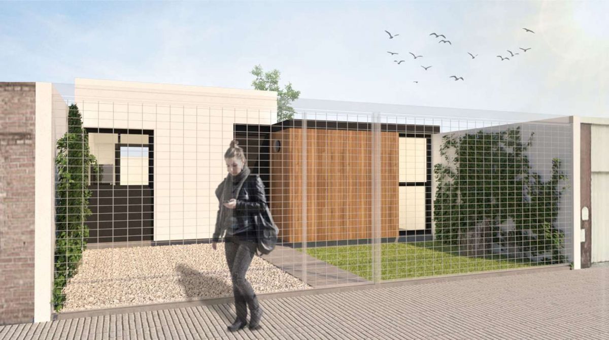 Es una vivienda individual pensada para un lote de 10 metros de ancho que también incluye un dormitorio.