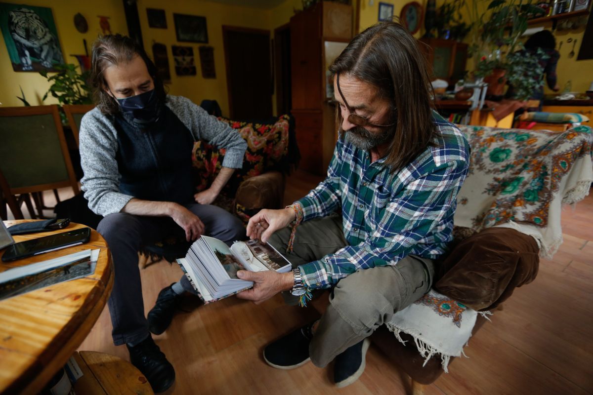 El ecologista continúa mirando los álbumes de fotos, donde aparece abrazado a su mamá, o donde se observa a su papá con un perfil similar al actor Viggo Mortensen…