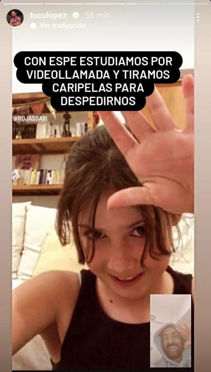 Este fin de semana, López compartió a través de sus redes sociales una muestra de lo importante que es para él Esperanza, la hija mayor la modelo. “Con Espe estudiamos por videollamada y tiramos caripelas para despedirnos”, escribió en una captura de pantalla de una videoconferencia que subió a sus stories.