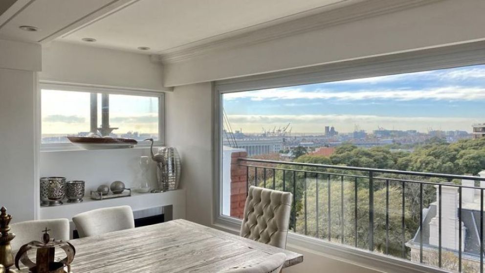 Cuenta con palier privado, hall de entrada, living, comedor con chimenea y un balcón que tiene una excelente vista perimetral para poder apreciar las maravillas de los alrededores del paisaje urbano. Además, posee un sistema especial de vidriado en ventanas que impide ver desde el exterior para mayor privacidad.