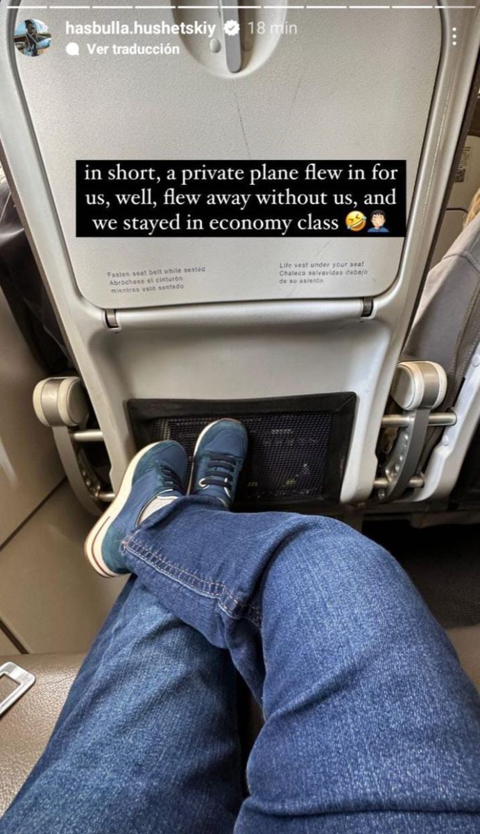 Además, alrededor de las nueve de la mañana, subió otra historia ya en el avión, emprendiendo su regreso, en la que escribió en inglés: “En resumen, un avión privado voló para nosotros, bueno, se fue volando sin nosotros y nos quedamos en clase económica”.
