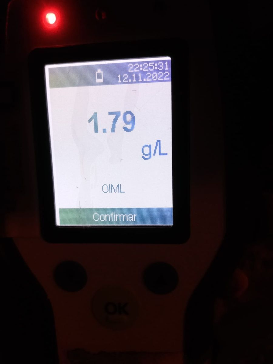 Una vez en el lugar los trabajadores de esa dependencia municipal procedieron a realizarle el test de alcoholemia al hombre de 60 años de edad, el cual arrojó que al momento del siniestro manejaba con 1,79 gramos por litro de alcohol en sangre.