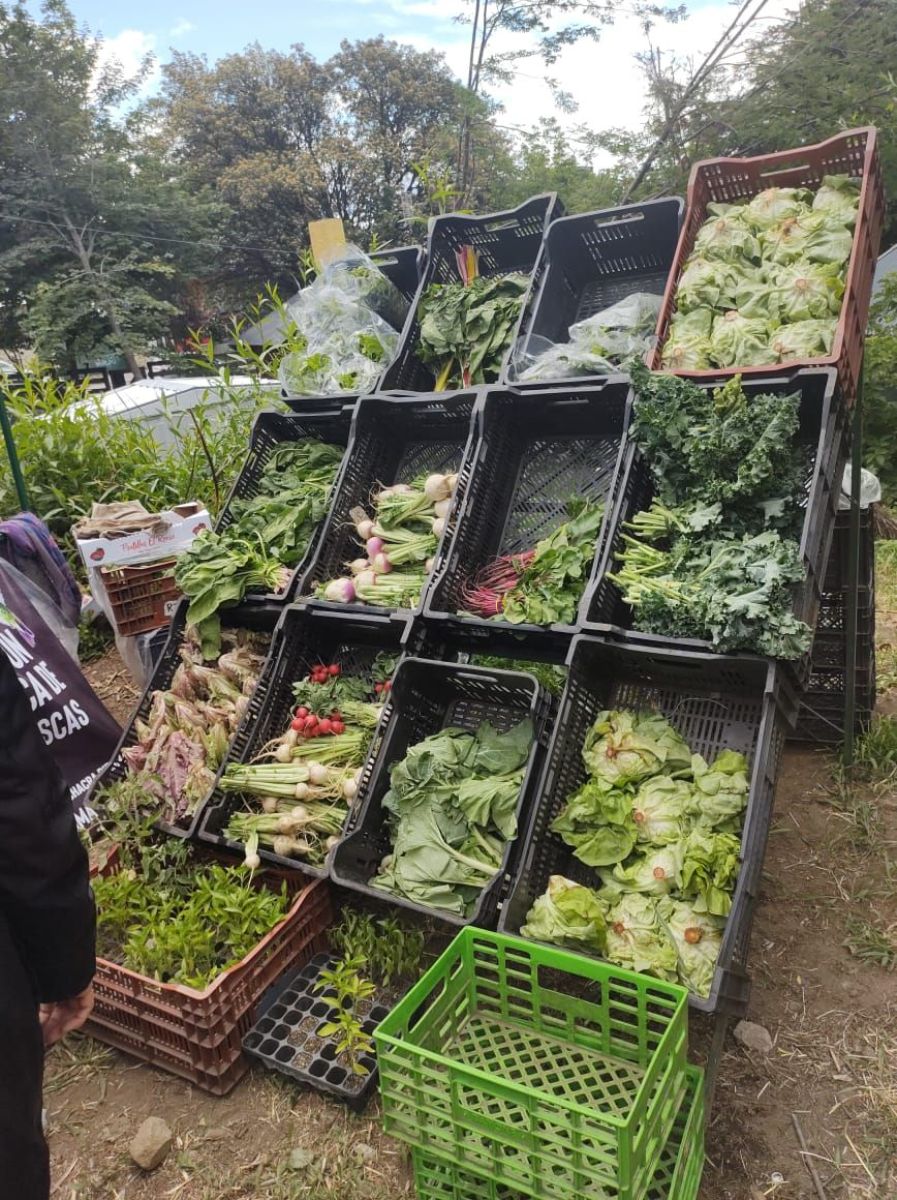 El puesto del Corredor Productivo, estuvo atendido por compañeres del Potenciar Trabajo, y es para destacar que se vendió casi la totalidad de las verduras de hoja cosechadas un día antes, en chacras de las unidades productivas de la UTEP de Cervantes, Mainqué y Roca-Fiske y de frutas aportadas por la cooperativa frutícola de Fernández Oro y la Primera Cooperativa.