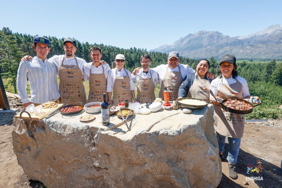 El contingente llegó finalmente al Laberinto Patagonia, ubicado camino a El Desemboque, en la localidad de El Hoyo donde los chefs Aillin Fogwill de Las Grutas, Camila Vizcarra de Jacobacci, Ezequiel González de Neuquén, Federico Fontán de Bariloche, Francisco Villalobos de Costa Rica, Juan Izaguirre de Bariloche, Margarita Nahuelpan de la Región de Los Ríos, Chile, Liliana Molina de Las Grutas, Jorge Pato Chifflet de Las Grutas y Juli Marmorato de Bariloche ya esperaban con un fabuloso almuerzo que sería la última de las intervenciones gastronómicas del encuentro.